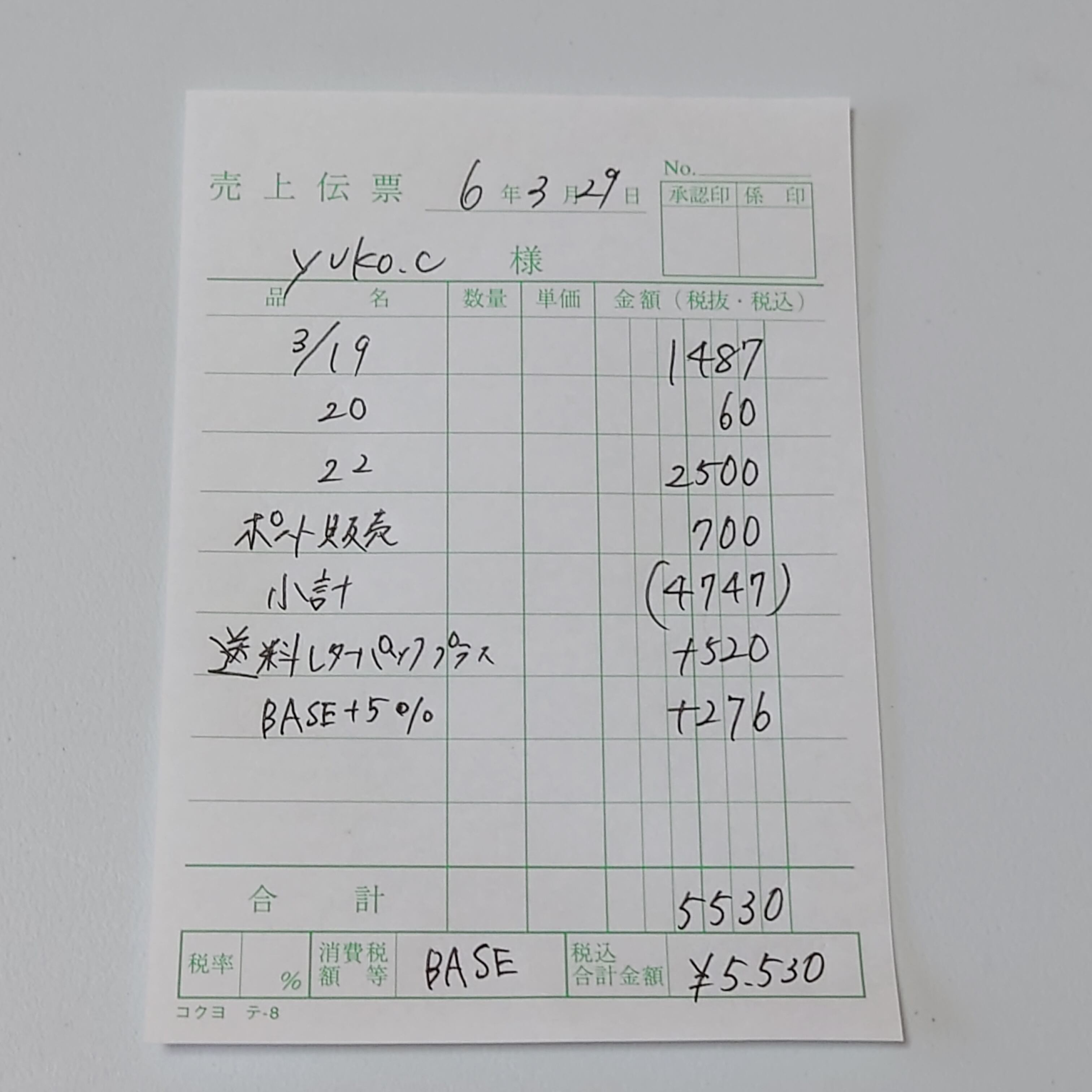 伝票金額ご確認下さいませ。