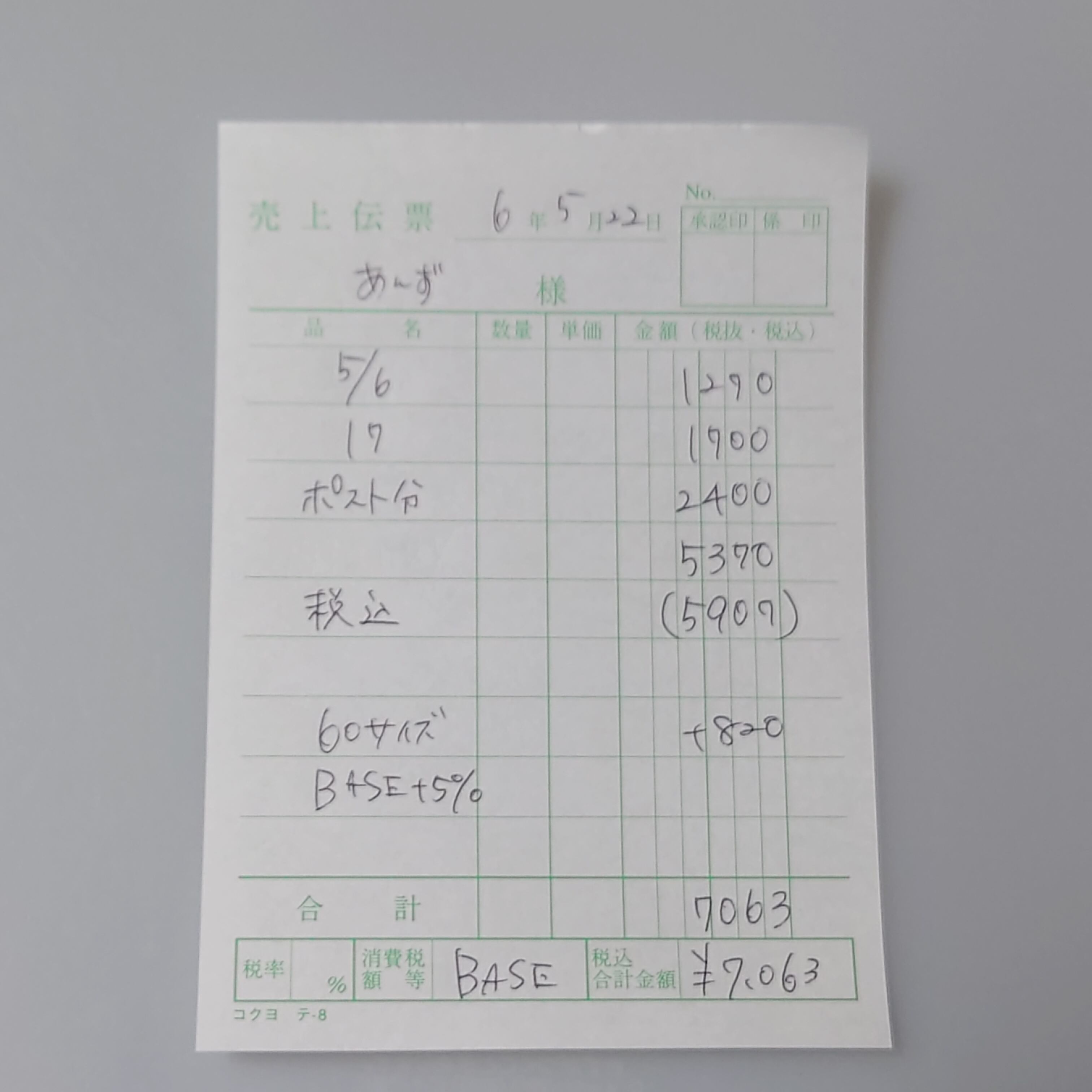 伝票を写真に追加しておりますのでご確認くださいませ。