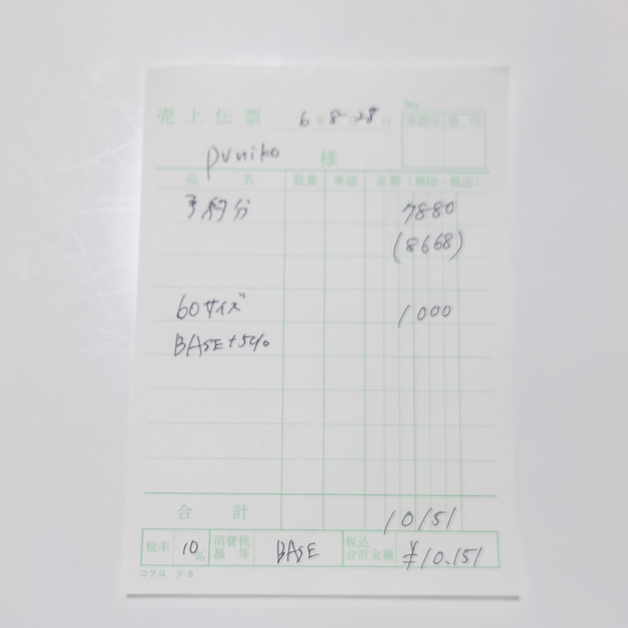 伝票を写真に追加しておりますのでご確認くださいませ。