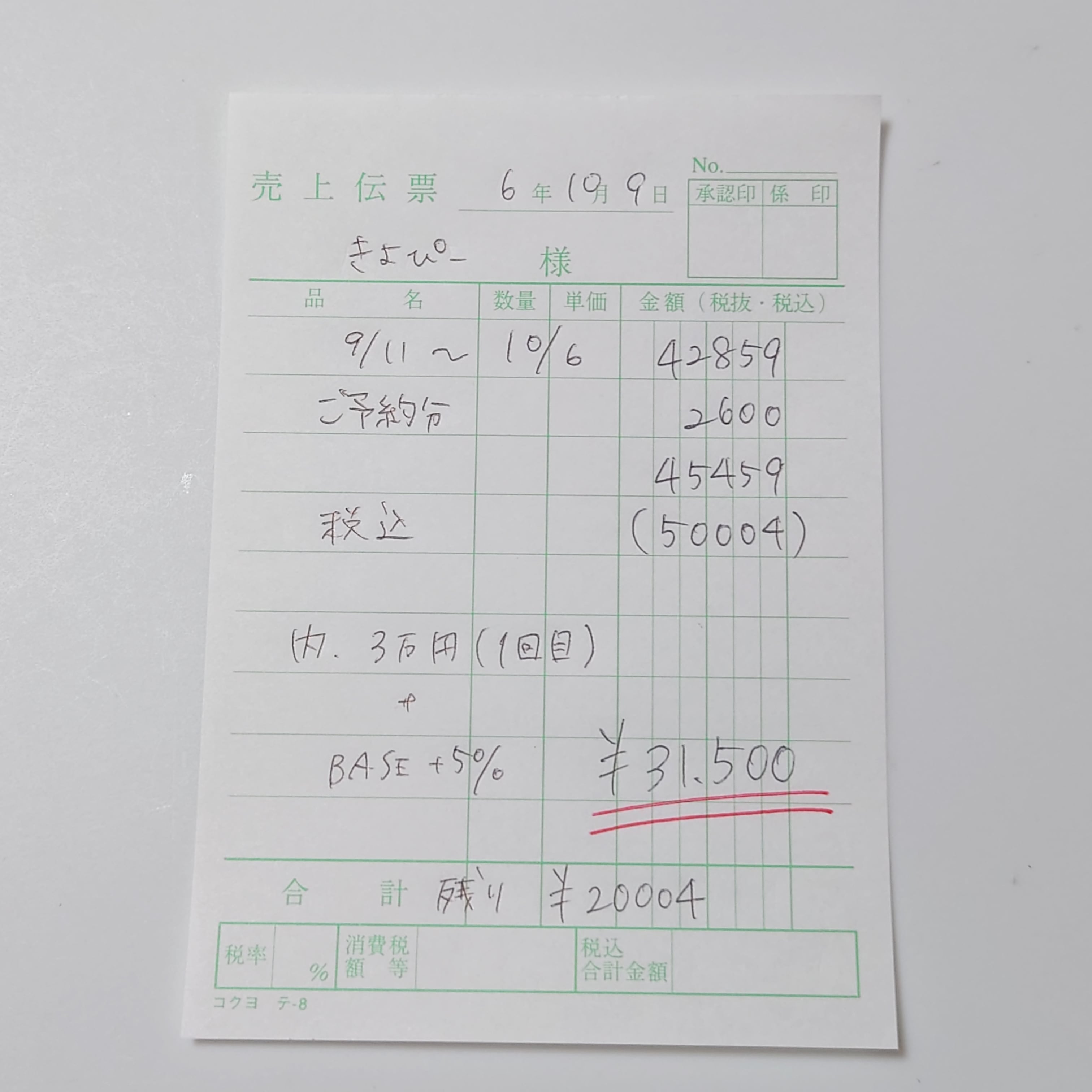 ご精算のご用意が出来ましたので伝票をご確認のうえ、お手続きどうぞ宜しくお願い致します。