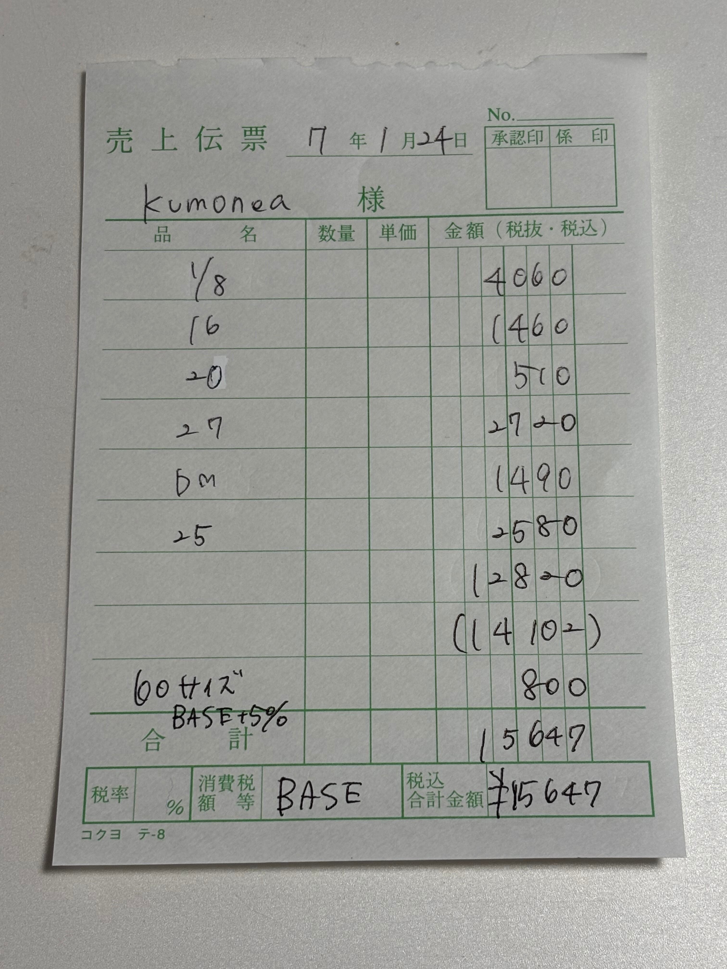 伝票を写真に追加しておりますのでご確認くださいませ。