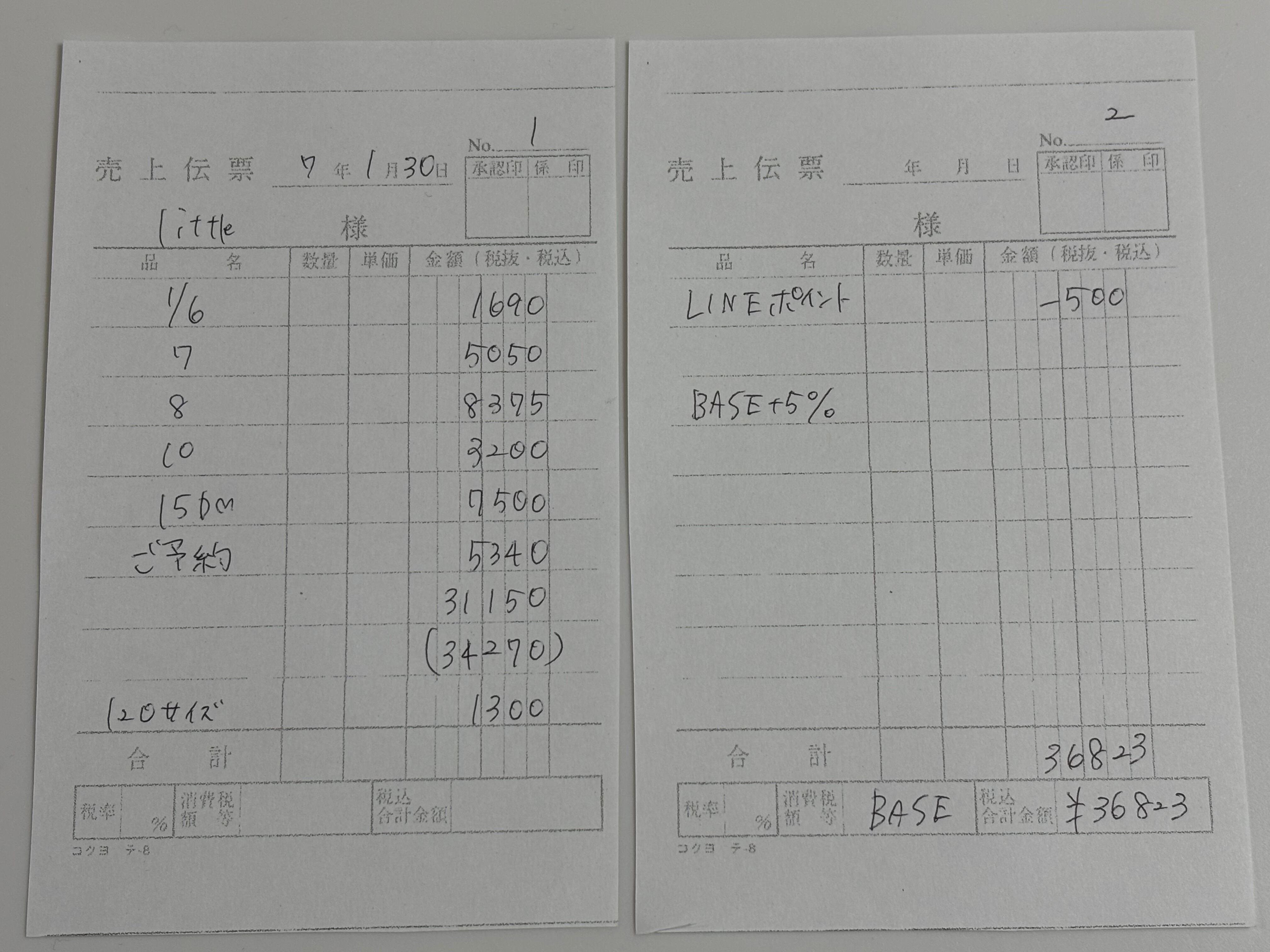 伝票を写真に追加しておりますのでご確認くださいませ。